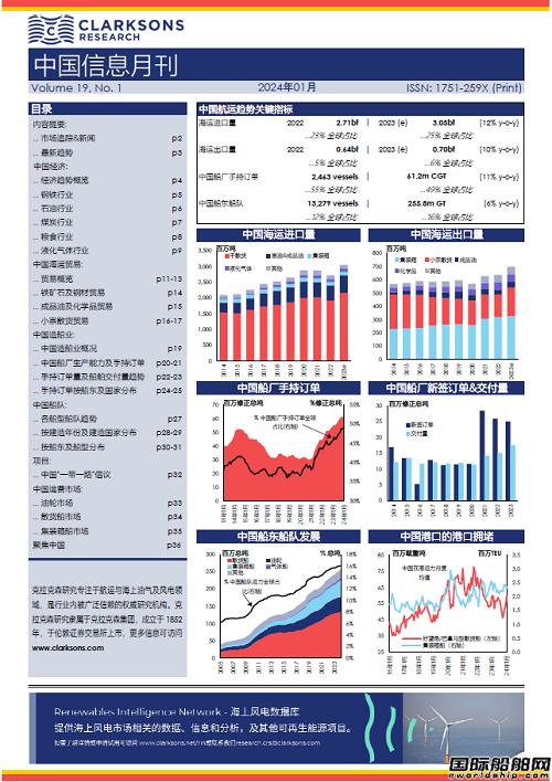 克拉克森研究统计,2023年中国海运进口量以吨计同比增长13%至超30亿吨的历史新高,在全球海运贸易量中的份额占比也由2022年的22%进一步上升至25%。