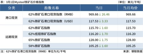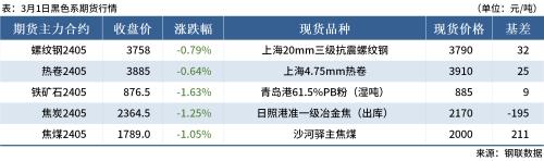 ◎3月1日,全国主港铁矿石成交57.00万吨,环比减32.3%;237家主流贸易商建筑钢材成交8.06万吨,环比增13.6%。