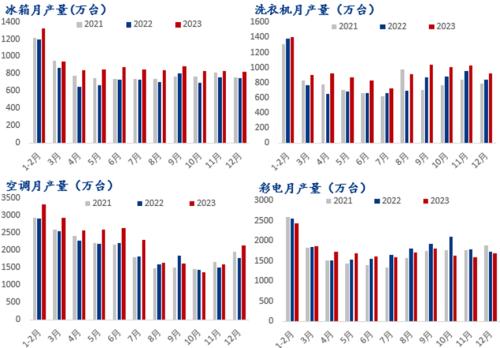 根据产业在线数据,2024年3月份家用空调排产2213万台,较去年同期实绩增长25.2%;冰箱排产837万台,较去年同期实绩增长8.4%;洗衣机排产644万台,较去年同期生产实绩增长5.4%。3月排产实际正增长,因为在传统的家电生产旺季,企业保持着相对紧张的备货节奏,季度末仍要为开门红做一波冲刺。一季度对全年目标达成很重要,因此厂家排产积极性都比较高。此外春节后厂家陆续开盘劲头很猛,新品发布、各项优惠政策等层出不穷。政策方向上,新召开的中央财经委员会第四次会议强调要推动消费品以旧换新,未来地方政府“以旧换新"的补贴政策陆续落地后,对于白电等传统消费品的市场增长将有很好的促进作用。
