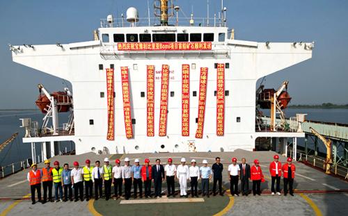 当地时间12月24日9时30分,满载着46000吨铁矿石的“安昌”号散货船从利比里亚首都蒙罗维亚的自由港码头启航,预计于2024年2月份抵达中国。该船铁矿石的成功发运标志着宝武资源在西非利比里亚的Bomi(宝米)项目建成投产。Bomi项目作为宝武资源首个成功开发、实现海运销售的控股铁矿项目,对中国海外铁矿石战略资源保障具有积极意义。该项目的建成投产也为今后宝武资源建设运营非洲地区矿产资源项目提供了宝贵经验。图为首船铁矿石发运仪式现场。