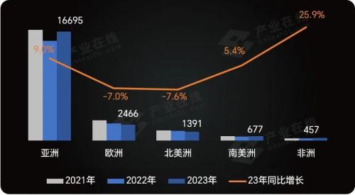 2021-2023全球冰箱冷柜细分洲别生产规模走势(万台)