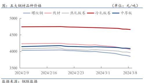 本周,全国主要市场五大品种钢材均价齐下跌。其中,螺纹钢、高线、热轧板卷、冷轧板卷、中厚板分别累计下跌121元/吨、116元/吨、76元/吨、48元/吨、48元/吨。