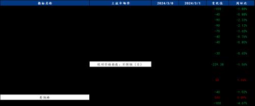 截止2024年3月8日,各原材料当日即时价格以及价格周环比情况如下: