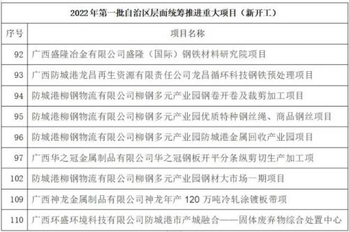 在新开工的190个重大项目中,防城港市就有9个钢铁项目,具体如下: