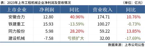 安徽合力、同力股份两家企业实现营收和净利润“双增”。其中,安徽合力净利润同比增超40%。