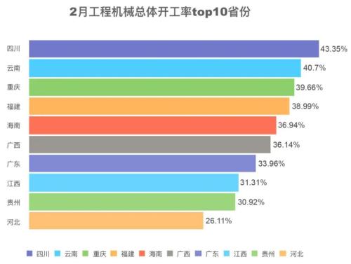 从各省开工率来看,2月受天气影响,开工率前列省份主要分布在南方。四川、云南、重庆、福建、海南为全国开工率top5省份。其中,自2023年3月起,海南省开工率一直排在全国前五。
