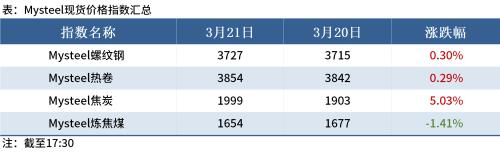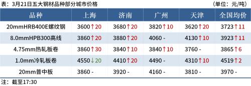 ◎3月21日,唐山迁安普方坯资源出厂含税上调20元,报3410元/吨。