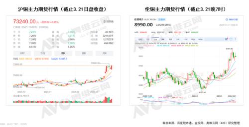 受国内政策预期与美联储降息预期的双重影响,加之矿山供应扰动与国内冶炼厂减产迹象,推动近期铜价上涨,且涨势不止、涨幅惊人。沪铜突破7万元大关后,持续创下2022年5月以来的新纪录,伦敦铜也刷新过去11个月的新高。截止3月21日晚7点,沪铜最高点价格达73900元/吨,伦铜最高价升至9164.5美元/吨。对于原材料近20%为铜的空调产品而言,铜价上升意味着成本压力直接增加,尽管目前尚未影响到整机制造端,但从长远来看,产品涨价是应对成本压力最简单最直接的手段。对于渠道商而言,提前下订单打款提货锁定低价,也是未雨绸缪的必然之举,故而原材料成本增长也成为驱动排产高增的重要原因之一。