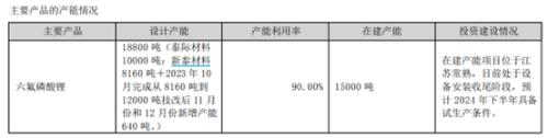 值得关注的是,在2023年半年报“公司在行业中地位”一节中,天际股份还表示,“2024-2025年规划再建六氟磷酸锂年产能15000吨,2025年产能爬坡,预计2026年产能全部释放,公司六饬姿犸年产能将达到52000吨。”