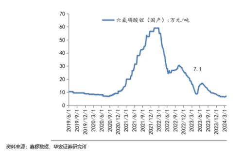 年报显示,报告期内六氟磷酸锂价格跟随碳酸锂价格变化,价格剧烈波动。进入2024年,1-2月份,六氟磷酸锂价格继续下跌,最低跌到每吨6.3万元左右;进入3月份,跟随碳酸锂价格止跌企稳,六氟磷酸锂价格也开始上涨,截至目前,六氟磷酸锂价格已回升至每吨7万元以上。