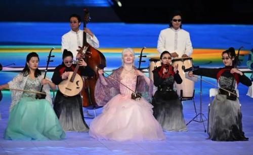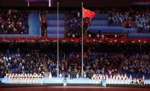 这是中华人民共和国国旗在开幕式上升起。新华社记者杜潇逸摄
