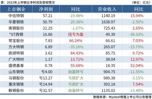 从营业收入来看,中信特钢、华菱钢铁和鞍钢股份营收超过千亿元。具体情况如下: