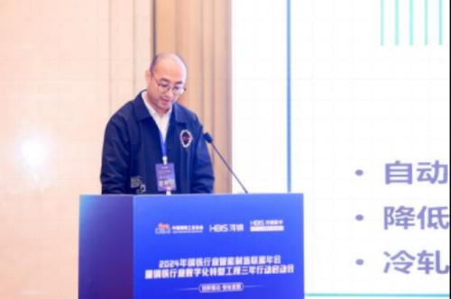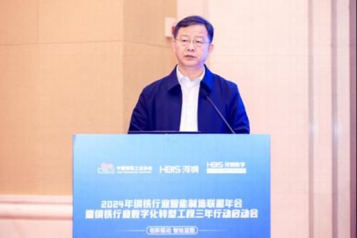 钢协党委副书记、副会长兼秘书长姜维,河北省工信厅党组成员、副厅长宋向党,工信部原材料司钢铁处处长文刚,河钢集团副总经理李毅仁为会议致辞。中国工程院院士、东北大学教授王国栋,中国科学院自动化研究所复杂系统管理与控制国家重点实验室主任王飞跃做特邀报告。钢协副秘书长兼科技环保部主任冯超、冶金科技发展中心主任姜尚清、钢协科技环保部处长兼智能制造联盟执行秘书长符鑫峰、河钢数字市场总监姜涛主持会议。中国信通院信息化与工业化融合研究所主任刘棣斐,符鑫峰,中冶赛迪集团副总经理李志分别对《原材料工业数字化转型工作方案(2024-2026年)》《钢铁行业数字化转型工程三年行动方案》《钢铁行业数字化转型工程建设指南》进行解读。