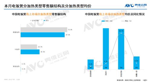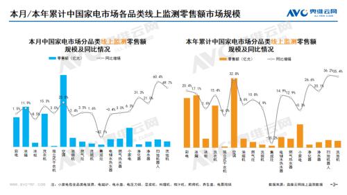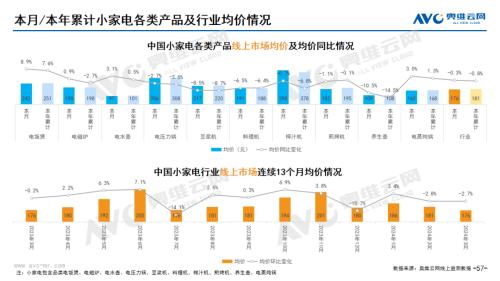小家电:据奥维云网(AVC)线上市场监测数据显示,3月小家电线上零售额规模同比增长6.3%;均价为176元,同比下降0.3%;高端品零售额占比3.0%,同比增长0.5%。