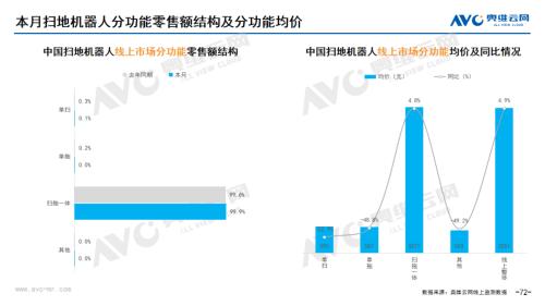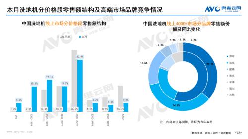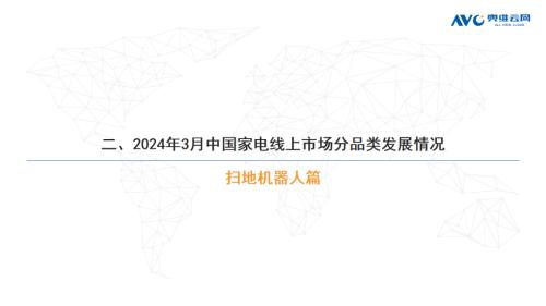 环电:据奥维云网(AVC)线上市场监测数据显示,3月环电主要品类中,净化器、净水器、扫地机器人和洗地机线上零售额规模同比分别为31.3%、21.0%、60.4%和49.7%;净化器、净水器、扫地机器人和洗地机的均价分为1479元、1714元、3251元和2044元,同比分别为-3.7%、0.3%、4.9%和-22.9%;各品类中,高端品零售额占比分别为7.3%、3.1%、12.7%和5.2%,同比分别为-4.4%、-0.4%、10.5%和-10.5%。