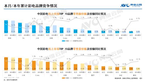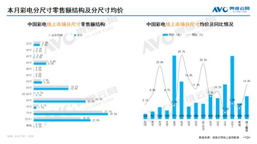 彩电:据奥维云网(AVC)线上市场监测数据显示,3月彩电线上零售额规模同比增长1.5%;均价为2793元,同比增长13.6%;15000+的彩电零售额占比3.2%,同比增长0.8%;不同彩电尺寸中,75寸+彩电零售额占比22.8%,同比增长3.9%。