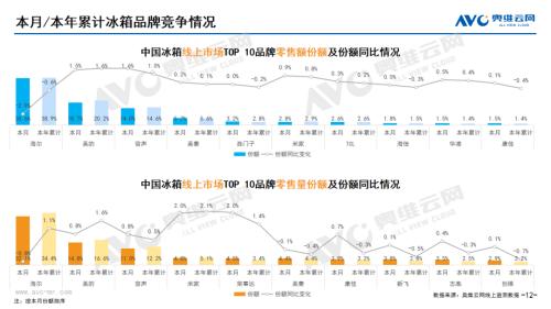 白电:据奥维云网(AVC)线上市场监测数据显示,3月白电各品类中,冰箱、冰柜、洗衣机、独立式干衣机和空调线上零售额规模同比分别为11.9%、-8.5%、15.3%、3.0%和22.5%;冰箱、冰柜、洗衣机、独立式干衣机和空调的均价分别为2392元、1062元、1451元、3519元和3184元,同比分别为5.8%、-6.7%、-5.9%、13.6%和1.2%;各品类中,高端品零售额占比分别为6.3%、4.9%、0.9%、18.6%和4.6%,同比分别为2.1%、0.4%、0.0%、11.5%和0.9%。