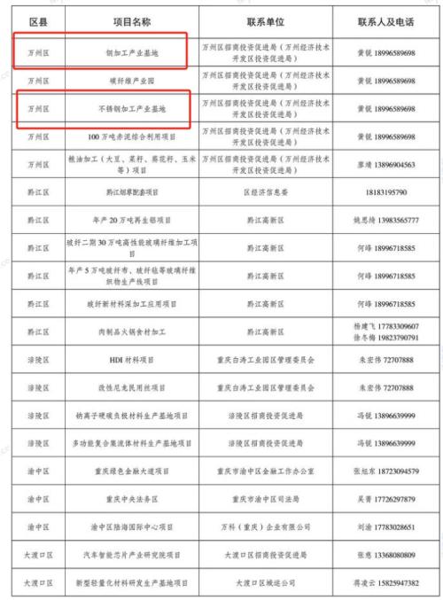 4月10日,重庆市经济信息委发布《重庆市产业高质量发展机会清单》,涉及160个招商策划项目,总投资5000亿元。