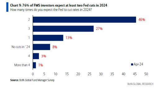 美银周二公布的最新月度基金经理调查则显示,近半数的受访者现在预计今年仅会有两次降息……