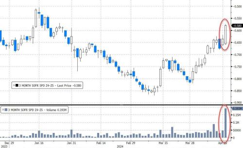 事实上,在降息预期整体持续消退下,如今就连明年的降息前景也正变得更为黯淡。对今年底和明年底SOFR合约的比价显示,美联储明年的降息幅度目前也已收窄至了58个基点,仅完全定价了两次降息。