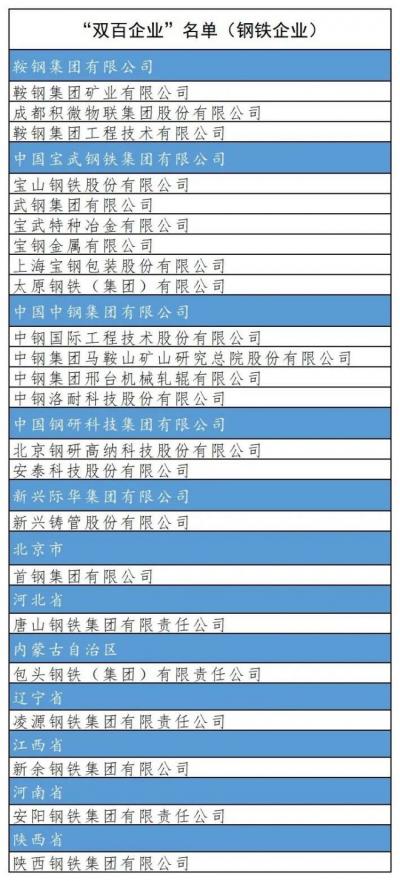▼“双百企业”(钢企类)具体名单