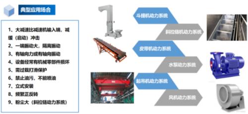 从上表可以看出,异步起动转差运行类的柔性联轴器存在3%~7%耗能,在选型过程应尽量避免。柔性联轴器尽量选用上表后四种减缓冲击方案!同步运行类联轴器运行过程不耗能,是首选的减缓冲击方案。传统的机械类同步联轴器,由于其弹性减缓冲击能力有限,单独使用通常仅适用小惯量负载;同步永磁超级弹性联轴器由于其超级弹性变形(7.5~15度,最大90度),减缓冲击能力显著增强,使同步联轴器成功应用到中等惯量负载,为节能传动提供了一全新产品,也是唯一入选国家发改委《低碳目录》的联轴器。