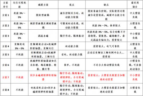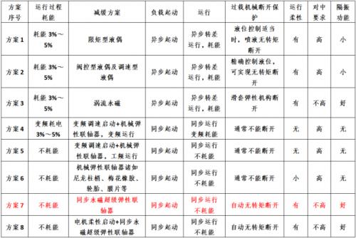 表1常用柔性联轴器方案负载起动、运行耗能、过载机械断开保护、运行柔性、对中要求、隔振功能对比