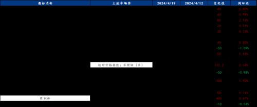 截止2024年4月19日,各原材料当日即时价格以及价格周环比情况如下: