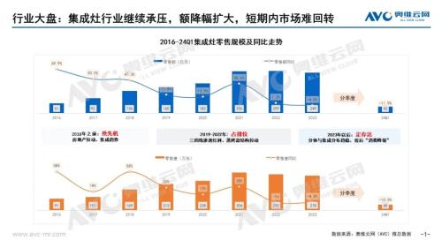 集成灶作为近几年发展最快的厨电品类,行业规模快速突破二百亿,成为厨卫第三大品类。但是,快速的发展也暴露了行业问题:一是一二线市场渗透不足、集成灶家电属性不足;二是供过于求,库存问题逐渐显现。以下沉渠道为例,奥维云网(AVC)监测数据显示,2024年一季度下沉渠道(天猫优品+苏宁零售云)集成灶累计订单量下滑73.6%,除大环境影响外,2023年大订单基数是重要原因,同时,2022-2024年多家集成灶企业的第二生产线与新生产园区不断建成投产,供求矛盾会更严重。三是集成灶企业品牌鱼龙混杂,杂牌长尾过多,仍需要时间去清退。