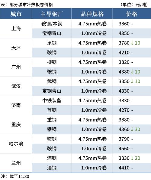 ◎重庆:28日早盘冷轧市场价格下跌30,1.0攀钢4360,柳钢4320,包钢4320,宝钢青山4320。(单位:元/吨)