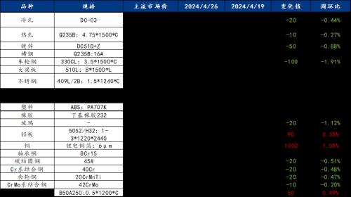 (1)截止4月25日,热卷总库存410万吨,月环比下降21.3万吨,热卷库存持续去化。制造业需求维持韧性,预计热卷库存仍将呈去库状态,供需逐渐向好;