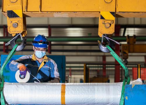 4月8日,中国宝武马钢股份埃斯科特钢公司生产线上,工人正在对负压救护车减震弹簧用材进行打捆包装(如图)。3月30日,该公司接到江西省南昌市江铃汽车股份有限公司预定3000只减震弹簧,用于生产负压救护车的紧急订单,这批负压救护车下线后将第一时间用于疫区一线。接到订单后,该公司即刻安排生产,最终在4月2日、4月7日和4月8日按规定时间,圆满完成了保供任务。