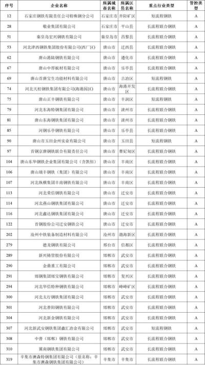 河北省重点行业环保绩效A级企业清单(钢铁)