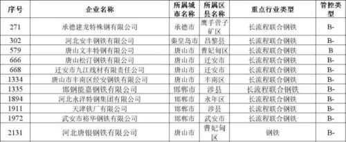 河北省重点行业环保绩效B级企业清单(钢铁)