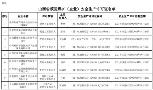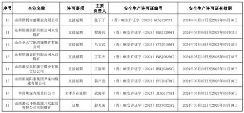经研究,按照有关规定,为华晋焦煤有限责任公司沙曲二号煤矿等17座煤矿(企业)颁发安全生产许可证,现进行公告。