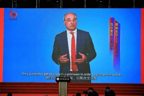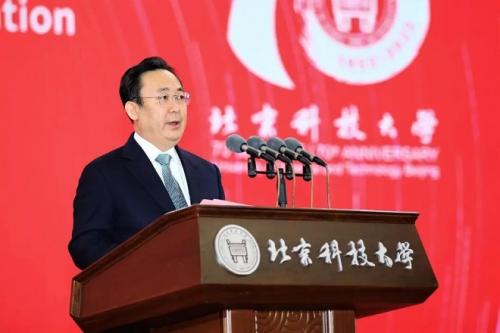 清华大学校长王希勤、德国亚琛工业大学校长乌尔里希*吕迪格分别代表国内、国外院校致辞。中国宝武党委书记、董事长陈德荣,中国工程院院士、北京矿冶科技集团有限公司首席专家沈政昌,北京科技大学新材料技术研究院教授董超芳分别代表学校校友、教师发言。
