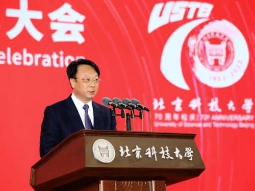 教育部党组成员、副部长宋德民出席大会并宣读了习近平总书记给北京科技大学老教授的回信。习近平总书记在信中指出,民族复兴迫切需要培养造就一大批德才兼备的人才。他表示,北京科技大学自成立以来,为我国钢铁工业发展作出了积极贡献,希望你们继续发扬严谨治学、甘为人梯的精神,坚持特色、争创一流,培养更多听党话、跟党走、有理想、有本领、具有为国奉献钢筋铁骨的高素质人才,促进钢铁产业创新发展、绿色低碳发展,为铸就科技强国、制造强国的钢铁脊梁作出新的更大的贡献。