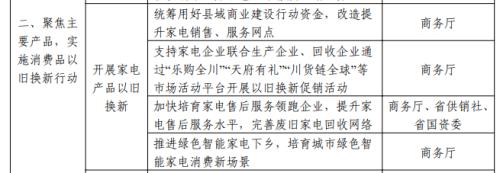 畅通家电更新消费链条。统筹用好县域商业建设行动资金,引导企业以县域为重点改造提升家电销售、服务网点。支持家电销售企业联合生产企业、回收企业开展以旧换新促销,开设线上线下家电以旧换新专区。支持具有市场优势的重点生产企业、流通企业参加“蜀里安逸”系列促消费活动,强化产销联动,推动“四川造”产品提升市场占有率,以促消费带动扩大生产。加快培育家电售后服务领跑企业,完善家电售后服务标准体系。支持电商平台依托大数据、物流等优势和丰富经验,提供“拆旧装新一体化”全链条服务。