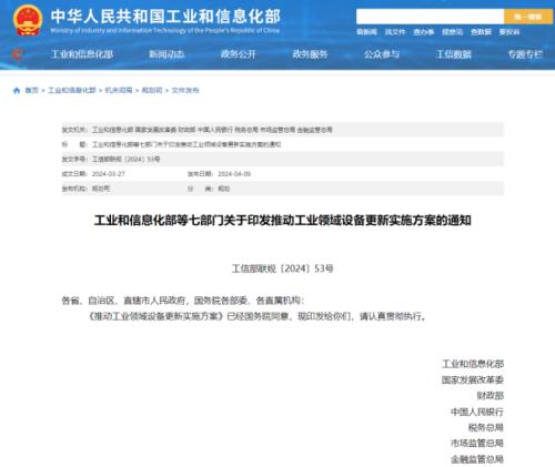 中央财经委员会第四次会议提出,要鼓励引导新一轮大规模设备更新和消费品以旧换新。近日,国务院印发《推动大规模设备更新和消费品以旧换新的行动方案》,工信部等七部门联合印发《推动工业领域设备更新实施方案》(以下简称《实施方案》),工业领域即将迎来一波“上新”机遇。
