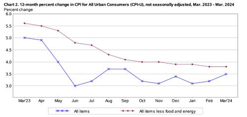 从下图可以看出,美国CPI数据在过去一年一直经历“反复波折”,始终无法降至3%以下,可见通胀的粘性。