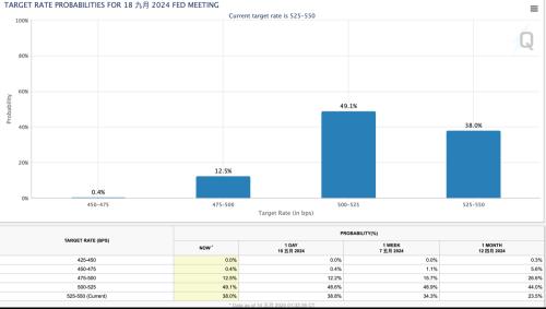 联邦基金利率期货定价显示,市场目前预计到2024年底美联储将降息45个基点,9月或11月将首次降息。据芝商所利率观察工具(FedWatch Tool),截至5月14日,交易员判断美联储9月首次降息的概率为49.1%。