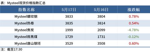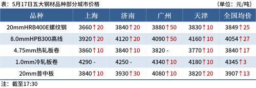 ◎ 5月17日,唐山迁安普方坯资源出厂含税上调20,报3500。(元/吨)
