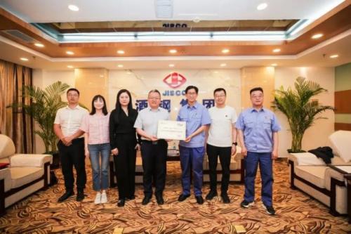 交流期间,范铁军向程子建赠送了中国冶金报社2023年酒钢集团报道集锦,并向酒钢集团颁发了由中国冶金报社评选出的“2024中国卓越钢铁企业品牌”奖牌。