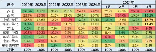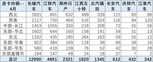 皮卡市场的主力区域在西北、西南为主,西部地区的皮卡需求较大。4月西北地区的皮卡需求表现较强。目前来看,西南、西北地区的皮卡需求占到总体需求的44%左右,成为两大核心市场的需求,其中今年西南市场表现较强。