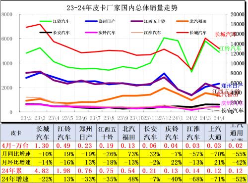 今年1-4月皮卡销量17.3万辆,实现同比增长6%,总体表现不错。