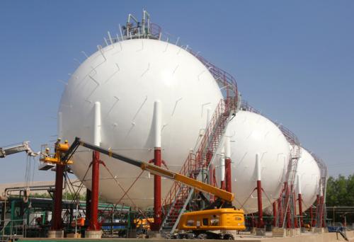 5月23日,包钢煤焦化工分公司甲醇合成氨项目液氨存储罐施工现场(如图)。据了解,该项目采用变压器吸附制氢工艺,通过反应及冷却措施,实现混合气体分离。利用分离器、合成塔等设备将氢气与氮气结合,排出氢气,产出合成氨。该项目设计年产量7万吨合成氨,目前主体项目施工已完成,计划5月底将开始单体试车。