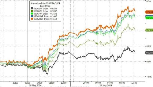 金融博客网站Zerohedge表示,本周一系列美债拍卖的结果非常糟糕,因此债券收益率的大幅走高也并不令人意外,这反映出市场对利率更长时间处于高位的担忧仍未消散。