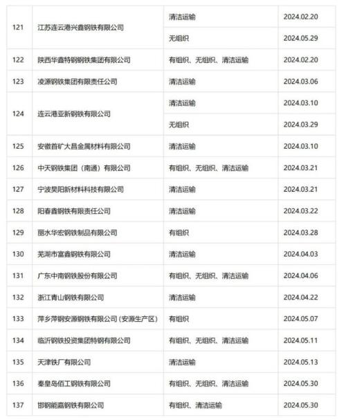 自2020年8月起,中国钢铁工业协会开展了钢铁企业超低排放改造和评估监测进展情况公示工作。截至目前,已有137家企业在钢协网站进行公示。已公示企业名单汇总及各企业公示内容整理如下: