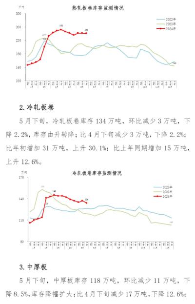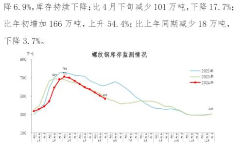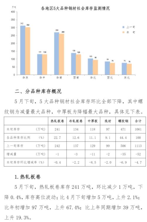 5月下旬钢材社会库存1061万吨 环比下降4.7%