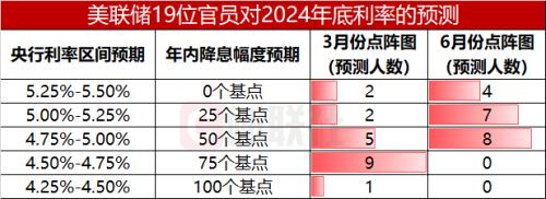 在政策声明中,“点阵图”发生了明显的变化,19位政策制定者的预期显示,年内降息幅度的中位数位于25个基点,较3月会议的75个基点明显收缩。其中,支持“不降息”的人数从2人提高至4人,支持“降息一次”的人数从2人提高至7人。